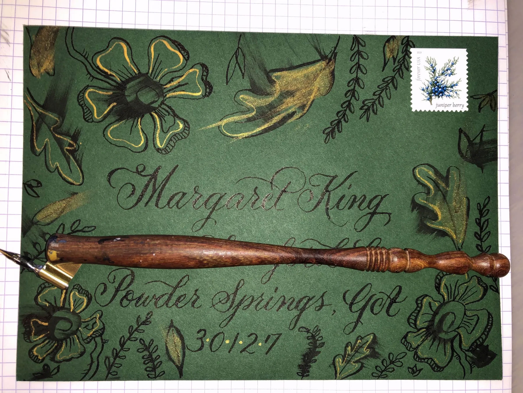 As a side note, student Isabel already took the project in this video head-on, and what she created is proof that the motif looks gorgeous on most envelope colors. Her deep green mail art feels especially appropriate for the festive holiday season!